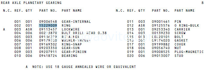 TR50 REAR AXLE PLANETARY GEARING RING 15229009
